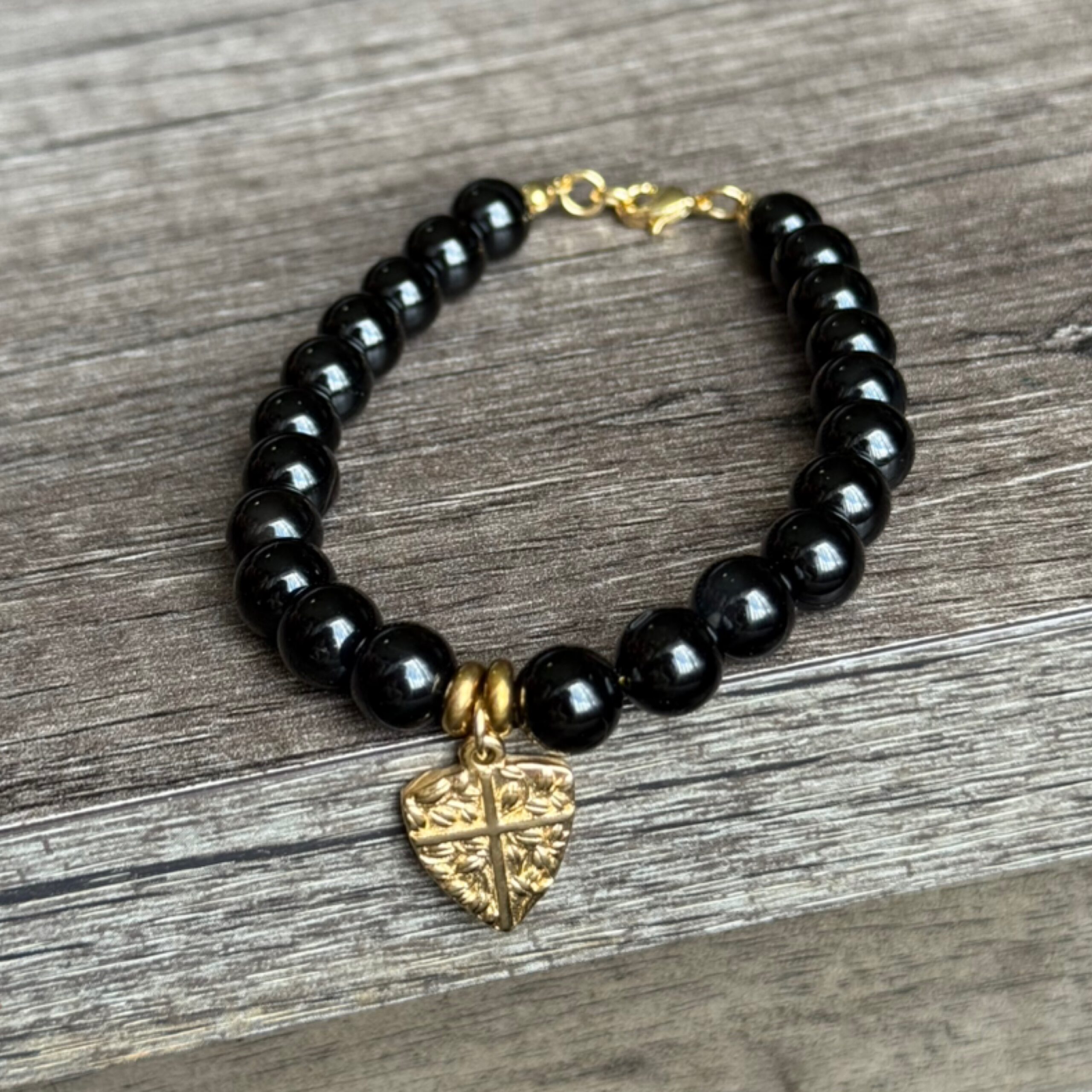 Beautiful Black healing crystal Bracelet with heart cross stainless steel charm