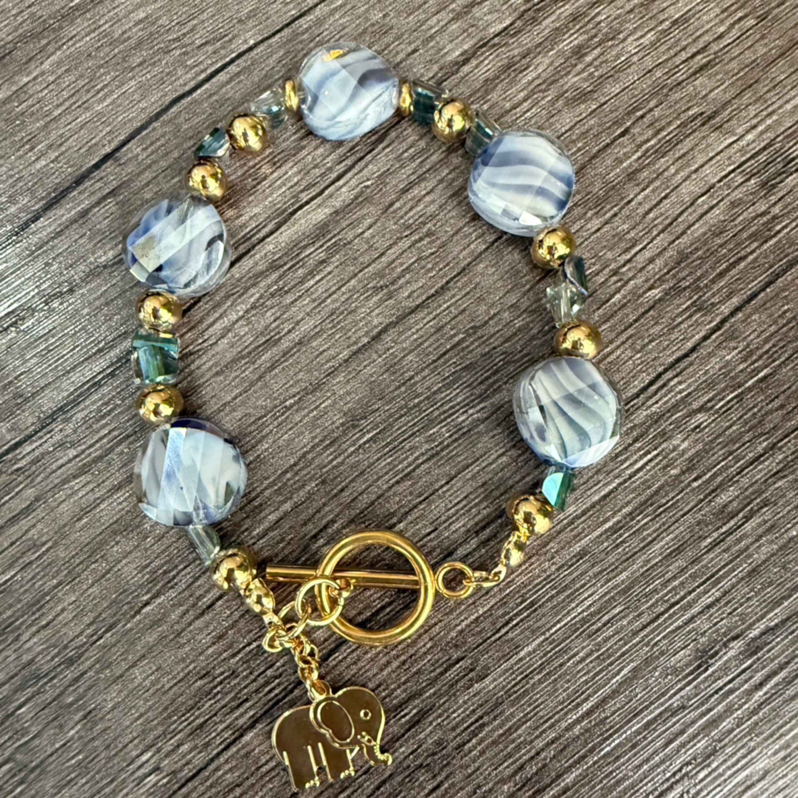 The Cristal and Elephant Bracelet features an elegant design combined with a unique charm that showcases intricate craftsmanship. This versatile accessory is suitable for a variety of occasions, blending seamlessly with both casual and formal attire. Highlighting a delicate elephant motif, it offers a meaningful touch for those who appreciate symbolic jewelry.